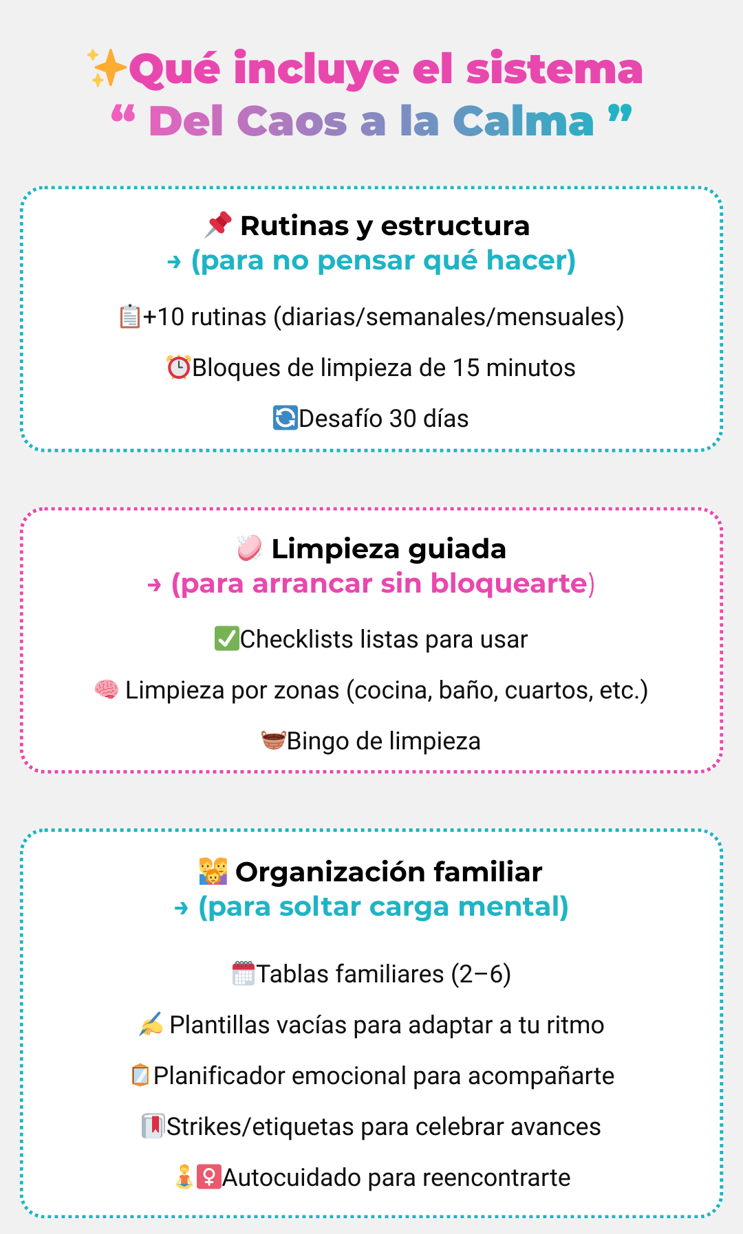 - ✅+10 rutinas visuales (diarias, semanales y mensuales) para saber qué hacer sin pensar.